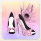 Diese Servietten eignen sich hervorragend für süße 16- oder Quinceañera-Partys oder für Veranstaltungen, die die Mode feiern. Rosa Glitzer Pumpen mit rosa Pfauenfeder und Hintergrund.
