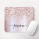 Girly Blush Rose Gold Glitzer Glam Metallic Monogram Name Script Custom Personalisiert Mousepad. Diese Design mit Ihrem Vornamen in einem hübschen handgeschriebenen Stil Swash Schwanz Schriftart Typografie auf Imitaten Rose Gold metallische Folie mit funkelnden Glitzer Rand. Diese lassen sich einfach anpassen. Großartiges Frauengeschenk zum Geburtstag, Muttertag, 16. Geburtstag, Brautparty und das ist für das Mädchen, das einzigartige, funkelnde Stilelemente Lieben.