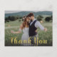 Ein goldfarbenes Pinselskript dankt Ihnen Nachricht und dunkler Farbverlauf überträgt Ihre Lieblings-Hochzeit Foto Note der Dankbarkeit. Benutzen Sie den leeren Platz auf der Rückseite, um eine persönliche Nachricht an Freunde und Familie zu schreiben. Dieses Design kann sowohl an Landschafts- als auch an Portrait Foto-Layouts angepasst werden. Kein wirklicher Funken oder Glanz.