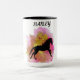 SCHWARZE PFERDE ZWEI ZONIERTE TASSE MIT PINK & GOLD GLITZERN PERSONALISIERT.