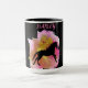 SCHWARZE PFERDE ZWEI ZONIERTE TASSE MIT PINK & GOLD GLITZERN PERSONALISIERT.