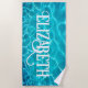 Genießen Sie das personalisierte Badetuch am Party oder das Party am Swimmingpool mit einem glitzernden, blauen Poolhintergrund. Diese personalisierten Strandtücher sind ein einmaliges Geschenk für jede Veranstaltung.