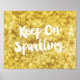 "Behalt On Sparkling" Zitat auf einem glänzenden goldfarbenen, glänzenden, verschwommenen Hintergrund.