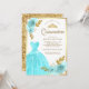 Sparkling Gown Aqua Blue Floral Gold Quinceanera Einladung