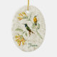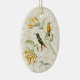 Zwei grüne Kolibris, einer mit blauem Hals und der andere mit hellgelber Brust, Erholung auf einer gelb-orangefarbenen Trompetenrebe, auf einem hellen, goldgelben Marmorboden. Personalisierungsoptionen auf Vorder- und Rückseite, oder Textentfernen für eine elegante naturlich inspiriert Ergänzung zu jedem Weihnachtsbaum. Perfekter jeden Anlaß für Liebhaber von Kolibri.