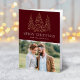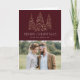 Moderne und elegante Urlaubskarte mit Ihrem Foto, ergänzt durch drei schneebedeckte Imitate mit goldfarbenen Kiefernwäldern mit bordeauxfarbenem Hintergrund. "Frohe Weihnachten" wird in einem weißen, modernen Serif-Schriftart mit Ihrem Namen oder benutzerdefinierten Text unten angezeigt. Die Innenseite der gefalteten Ferienkarte enthält Ihre individuelle Nachricht. Auf der Rückseite der Karte befindet sich ein zusätzliches Foto.