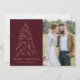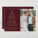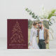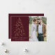 Moderne und elegante Urlaubskarte mit Ihrem Foto, ergänzt durch ein schneebedecktes Imitat mit goldgelbem Kiefernholz mit bordeauxfarbenem Hintergrund (oder nach Ihren Vorstellungen). "Frohe Weihnachten" wird in einem weißen, modernen Serif-Schriftart mit Ihrem Namen oder benutzerdefinierten Text unten angezeigt. Die Foto-Urlaubskarte kehrt zurück, um drei goldene Kiefernbäume mit Ihrer individuellen Nachricht unten in weißem Text anzuzeigen. Dieses Design ist ideal, um als Ihre Familie Weihnachtskarte oder Business/Corporate Ferienkarte zu verwenden.