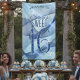Mit diesem einzigartigen Banner-Template mit zartem Wirbel in staubblau auf pastellblauem Hintergrund feiern Sie stilvolle Events. Der auffällige '16 . Geburtstag' in einem glühenden saphir blauen Glitzer-Effekt ist optional und kann gelöscht werden, um die Vorlage für andere Gelegenheiten zu verwenden. Verwenden Sie die Vorlage, um den Namen und die Begrüßungsbotschaft Ihres Jubiläums anzupassen. Suchen Sie ID652, um weitere Produkte und Farboptionen für dieses Design zu sehen.