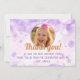 Express gratitude after a magical birthday celebration with this thank you card! Featuring a beautiful personalized photo of your child, surrounded by dreamy purple watercolor bubbles and shimmering silver stars. This whimsical design is perfect for a girl's birthday party, making guests feel appreciated for their presence and gifts. Easily customize with your own photo and message to create a memorable keepsake. A truly special way to say 'thank you' for the best birthday ever!