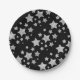 Sparkly Silver Stars Christmas pattern black Pappteller