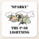 "Sparky" der P-38-Cartoon. Farbspass zeichnend mit "Sparky" in schwarzem Schablonenstift Schriftart über das Bild und "P-38 Blitze" in schwarzem Schablonenstift Schriftart darunter. Es macht Spaß, bei der Geburtstagsparty eines Kindes mitzumachen, wenn es ein Blitzfan ist.