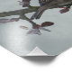 Ein gemutetes Foto in sanften Grautönen und Rosa eines Spatzen stand auf einem Zweig.