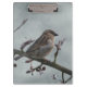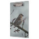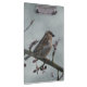 Ein gemutetes Foto in sanften Grautönen und Rosa eines Spatzen stand auf einem Zweig.
