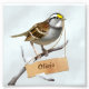 Weißkehlammer (Zonotrichia albicollis) im Schnee. Kleines Holzbrett. Anpassen des Namens. Ideal für Geschenke.