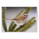 Im Winter sitzt ein weißer Kehlkopf auf einem Kiefernbaum. In Pleasant Valley, NY.