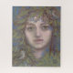 Puzzle mit pastellfarbenem Bild, imaginäres Portrait von Waldgöttin oder Baumgeist, schöne junge Frau in Blumenkrone, begleitet von zwei Spatzen. Olivgrün, Kobaltblau und Braun. © Julia Khoroshikh 2021 www.juliakhoroshikh.art #fantasyart #pastelpainting #imaginaryportrait #surrealportrait #dryad #spiritofnature #woodnymph #pagan #puzles