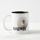 Foto eines kleinen, aber ziemlich aggressiv anschauenden Spatzen und eines Textes Badass. Das ist wirklich ein Unruhestifter. Funny coffee Tasse für jedermann