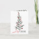 Ein wasserfarbener, sparsamer Zweig mit fünf roten Ornamenten und dem roten Sprichwort "Frohe Weihnachten" in einem modernen gemischten Schriftart unterstreicht diese minimalistische Urlaubskarte.