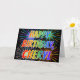 Diese Spaß-, vibrierenden, mehrfarbigengeburtstagsgrußkarten-Ausrüstungsbeschreibungen die Mitteilung "ALLES GUTE ZUM GEBURTSTAG," und der allgemeine Vorname "CHERYL" mit den Buchstaben, die ein buntes Regenbogenspektrum haben, mögen Steigungsfarbtonmuster. Der Hintergrund der Front kennzeichnet auch ein buntes Muster, das durch den Auftritt der Sprengung der Feuerwerke inspiriert wird. Die inneren Eigenschaften eine personalisierte Grußmitteilung oder konnten möglicherweise geklärt werden und verlassener freier Raum, wenn eine Mitteilung eigenhändig stattdessen geschrieben werden soll. Eine Geburtstagsgrußkarte so wäre möglicherweise eine Spaßweise, den Geburtstag von jemand zu bestätigen genannter Cheryl. [~Z0000350]