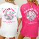 Personalisieren Sie die Vorder-und Rückseite dieses super niedlichen und lustigen My Last Disco Thema Hot Rosa und Weiß Hochzeit Junggeselinnen-Abschied oder Weekend T - Shirt für die Braut mit Disco Bride und Retro Disco-Ball auf der Vordertasche, und Bride Name, Jahr und Stadt / Staat des Party auf der Rückseite! Das weiße "Disco Queen" Design ist auch für Hochzeitsgäste und Hochzeitgäste verfügbar. Design liebevoll erstellt von Fig und Lily Studios - bitte Nachricht oder E-Mail: contact@figandlilyco.com für spezielle Design-Wünsche, die für Sie interessant sind