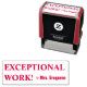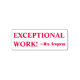 Dieses motivierende Gummi Briefmarke Design beinhaltet die inspirierende Nachricht "EXCEPTIONAL WORK!" und einen benutzerdefinierten Tutor-Namen. Es könnte von einem Lehrer, Pädagogen oder Tutor verwendet werden, um anzuzeigen, dass ein Schüler gut abgeschnitten hat.