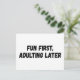 Kühne, spielerische Typografie, die Sie daran erinnert, sich zu amüsieren, bevor Sie die ernsthafte Seite des Erwachsenenalters annehmen. Perfekt für Spaß-Fans, Freerides und für alle, die Spaß und Spaß haben wollen, ist das Richtige.