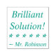 Dieses positive Gummi Briefmarke Design beinhaltet die inspirierend Feedback-Nachricht "Brilliant Solution!" und einen personalisierten Tutor-Namen. Es hat auch eine dekorative Sternform. Es könnte von einem Lehrer, Pädagogen oder Tutor verwendet werden, um zu bestätigen, dass der Schüler gut abgeschnitten hat.