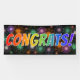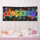 Dieser Spaß, aufregende FahnenAusrüstungsbeschreibungen die Glückwunschmitteilung "GLÜCKWUNSCH! ", mit den Buchstaben inspirierte Haben eines Regenbogenspektrums Steigungsmuster. Es kennzeichnet auch ein vibrierendes Berstfeuerwerke inspiriertes Hintergrundmuster.