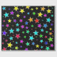 Dieser Spaß, mehrfarbige Ausrüstungsbeschreibungen ein Muster der Sternformen der verschiedenen Größen und gefärbt einer Vielzahl von Farben auf einem schwarzen Hintergrund.