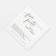 Dieses hübsche Paper Napkins besticht durch ein minimalistisches Schwarz-Weiß-Design und eignet sich hervorragend, um den Cocktail, das Essen oder den Dessert am Abend Ihrer Hochzeit Probe zu würdigen! Passen Sie die lustigen Fakten über das glückliche Paar einfach an! Passen Sie die Textfarben und den Text an, um das Thema Ihrer Veranstaltung optimal zu berücksichtigen.