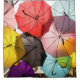 Vergnügen, bunte, schwimmende Regenschirme in den Farben Rot, Rosa, Schwarz, lila, Gelb, Hellblau und Aquamarin. Die Sonne scheint durch sie, wenn man nach oben schaut. Ein schönes Sommerfoto für Ihre Badedekoration.