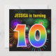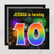 Spaß-Feuerwerke + Regenbogen-Muster "10" Einladung