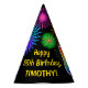 Dieser Spaß, die vibrierenden Geburtstags-Partyhut-Ausrüstungsbeschreibungen, die bunte celebratory Berstfeuerwerke sind, inspirierte Muster, zusammen mit der Nr. "55", einen mehrfarbigen Regenbogen wie Spektrum oder Steigungsmuster habend. Er kennzeichnet auch einen kundengerechten Namen und eine Ereignismitteilung, wie ein "alles Gute zum Geburtstag" Geburtstagsgruß. Ein Geburtstag-themenorientierter Papierhut so könnte von den Teilnehmern an einem Geburtstags-Party getragen werden, das gehalten wird, um jemand fünfter Geburtstag fünfzig zu feiern. [~Z0000333]