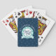 Spaß Familienspiel Poker-Nachtspiel-Spielkarten. Das Design weist einen marineblau Hintergrund mit Kartenmuster-Hintergrund auf. Ein aquamarines Chip-Design-Emblem in der Mitte mit "Poker Night" entworfen in einem stilvollen Skript und personalisiert mit dem Familiennamen und Jahr. Ideal für ein Party mit Poker. Kunstwerk von Moodthologie. Hinweis: Die Farben können geändert werden.