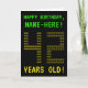 Auf der Vorderseite dieses nerdy, anpassbaren Geburtstagskarten-Designs befinden sich die Nachrichten "HAPPY BIRTHDAY" und "42 YEARS OLD!" sowie ein bearbeitbarer Empfängername. Die Nachrichten auf der Vorderseite haben ein Aussehen inspiriert von pixeligen klassischen Computerspielen. Die Ziffern der großen Zahl "42" auf der Vorderseite bestehen aus kleineren "4"- oder "2"-Stellen, was ein inspiriertes ASCII-Aussehen verleiht. Im Inneren befindet sich eine Geburtstags-Grußnachricht, die bearbeitet werden kann. Eine Grußkarte wie diese im geeky-Stil, die an den Geburtstag angepasst wurde, könnte eine alberne Möglichkeit sein, jemandem, der seinen 42. Geburtstag feiert, eine Geburtstagsgrüßbotschaft zu schicken. [~Z0000366]
