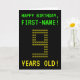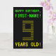 Auf der Vorderseite dieses nerdy, bearbeitbaren Geburtstagskarten-Designs befinden sich die Nachrichten "HAPPY BIRTHDAY" und "9 JAHRE ALT!" sowie ein benutzerdefinierbarer Empfängername. Die Nachrichten auf der Vorderseite haben ein Aussehen inspiriert von pixeligen klassischen Videospielen. Die Zahl "9" auf der Vorderseite besteht aus kleineren "9" Ziffern, was ein inspiriertes ASCII-Aussehen verleiht. Im Inneren befindet sich eine Geburtstags-Grußbotschaft, die personalisiert werden kann. Eine geeky Art, personalisierte Geburtstagskarte wie diese könnte eine besondere Art sein, Geburtstagswünsche jemandem zu senden, der seinen neunten Geburtstag feiert. [~Z0000366]