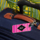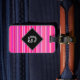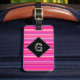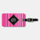 Dieses Gepäckumbau-Ausrüstungsbeschreibungen ein Spaß, glückliche, girly Streifen kopieren die Aufmachung der verschiedenen Schatten von Farben wie rosa und Lila. Er kennzeichnet auch einen personalisierten Anfangsbuchstaben in einem funky Schriftart auf der Front und personalisierte Kontaktinformationen über die Rückseite.