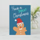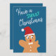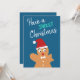 Genießen Sie eine Weihnachts-Weihnachtspass-Begrüßungskarte mit einem niedlichen, gebackenen Lebkuchenmann mit einem roten Hut und einer weißen Bogen-Krawatte.