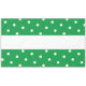 Dieses lustige, sportliche Design zeichnet sich durch einen breiten, weißen, horizontalen Mittelstreifen mit hellen kelly grünen Streifen aus. Festliche weiße Polka-Punkte aus gefliestem Kacheln verlaufen durch die farbenfrohen Streifen am Rand.