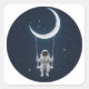 Spaß im Weltraum - Astronaut schwingt auf dem Mond Quadratischer Aufkleber
