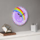 Farbenfrohe Kinder Regenbogenfarben grafische Wanduhr, die exklusiv von Sarah Trett entworfen wurde. Anpassen mit dem kurzen Buchstabennamen Ihrer Wahl, dieses Beispiel liest Amelia. Es wäre eine großartige personalisierte Ergänzung zum Kinderzimmer.