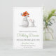 Niedliche und einmalige Einladung zum Urlaub mit der Illustration eines Großmutter-Schneemanns mit ihrem kleinen Enkel oder ihrer Enkelin. Sehr niedlich und süß zu schicken an Ihre Liebe in dieser Ferienzeit und laden sie zum Abendessen ein. Illustriert und entworfen von Patricia Alvarez.