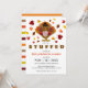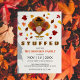 Laden Sie Freunde und Familie ein, um sich mit der Familie für ein Erntedank-Fest mit diesen lustigen "lass gefüllt" Truthahn Erntedank Einladungen. Mit Saisonfarben, Blätter, niedlichem Truthahn und einer modernen Einladungvorlage.
