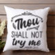 Fun Kissen mit "Du sollst mich nicht versuchen Mood 24-7" in schwarz auf der Vorderseite und lustige elegante schwarze pinstripe zurück. In unserem Zazzle-Shop finden Sie passende Artikel, um Ihre Veranstaltungskollektion abzuschließen!