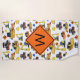 Dieses Badetuch, mit seinen Spaßillustrationen der Baufahrzeuge, Zeichen und Schutzhelme, ist für zukünftige Auftragnehmer und Bauarbeiter groß. Personifizieren Sie mit dem Monogramm Ihrer Wahl, das auf einer Orange erscheint, Bauzone Verkehrsschild.