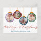 Spaß Modernes Weihnachtsgeschenk 4 Foto Weihnachtskarte. Feiern Sie die Saison mit dieser wunderschön gestalteten Weihnachtspostkarte mit vier baubelförmigen Foto-Platzhaltern, die Ihre Lieblingsfamilienmomente präsentieren. Das festliche Design beinhaltet "Frohe Weihnachten" in eleganter, roter Schrift-Typografie für eine warme und einladende Touch. Ideal, um personalisierte Urlaubssgrüße an Familie und Freunde zu senden!