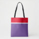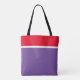 Dieses farbenfrohe Design zeichnet sich durch einen breiten, leuchtend roten Streifen aus, der in Weiß umrissen ist, oberhalb eines lila Farbblocks, der den Rest des Designs ausfüllt.