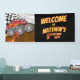 Willkommen Gäste im Hochleistungsstil mit diesem personalisierten Monster-Truck-Party-Banner! Perfekt für Kinder, die Trucks, Rennen und Abenteuer lieben. Es zeigt einen donnernden roten Monster-Truck mit Flammen und einer Checkered-Flagge. Vollständig anpassbar mit dem Namen und Alter des Kindes. Ideal für die Dekoration Ihres Partyeingangs, Foto-Hintergrunds oder Party-Raums für Truck-Themen-Geburtstagsfeiern, die die Monster-Truck-Begeisterung einfangen! Passt perfekt zu passenden Einladungen und Party-Accessoires.