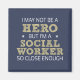 Ich bin vielleicht kein Held, aber ich bin ein Sozialarbeiter, so nah genug humorvolle Wortkunst in Sans-Serif und doodle Cross-Luch-Schriftart, der in weiß und goldgelb mit zwei bedrückten Akzent Sterne schrieb.