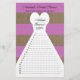 Dieses lustige Brautparty Wortspiel ist ein Wortspiel mit den Namen der Braut und des Bräutigams als Mittelpunkt. Die Gäste versuchen zu sehen, wie viele Wörter sie aus den Namen der Paare machen können. Das Design ist abwechselnd orchid und burlap Streifen Streifen auf der Vorderseite, wo ein Brautkleid sitzt mit Platz, um Wörter zu schreiben. Die schöne Orchideenfarbe setzt sich auf der Rückseite des Spiels fort. Copyright henishouseuse paper